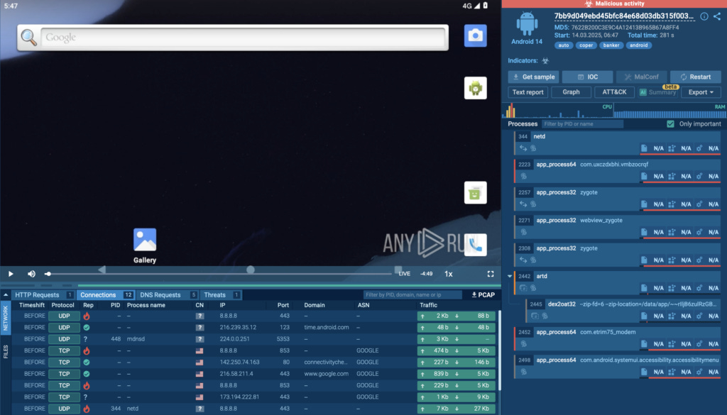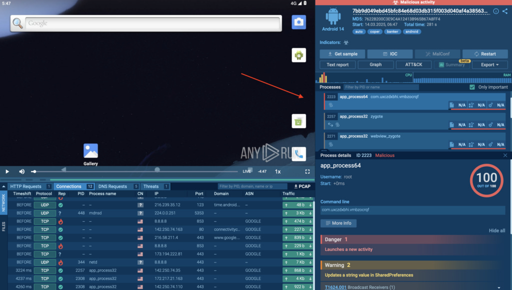 With ANY.RUN’s Android OS sandbox, we can break down exactly how this malware behaves in real time.