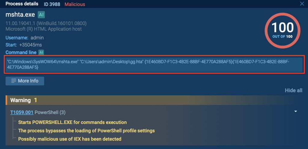 See this MSHTA attack exposed live inside ANY.RUN: